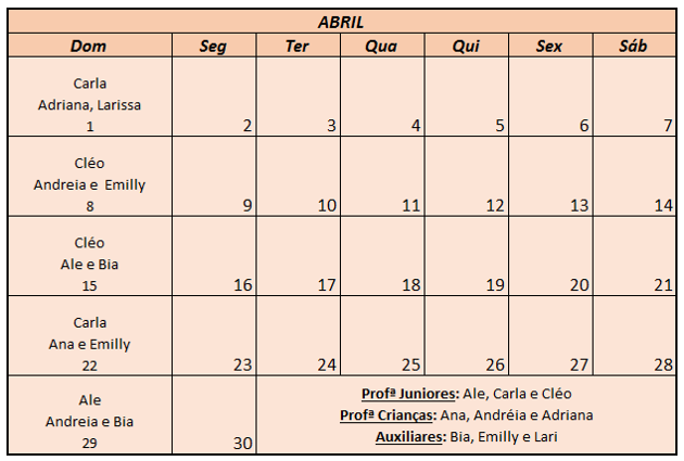 Escala do mês de Março de 2018